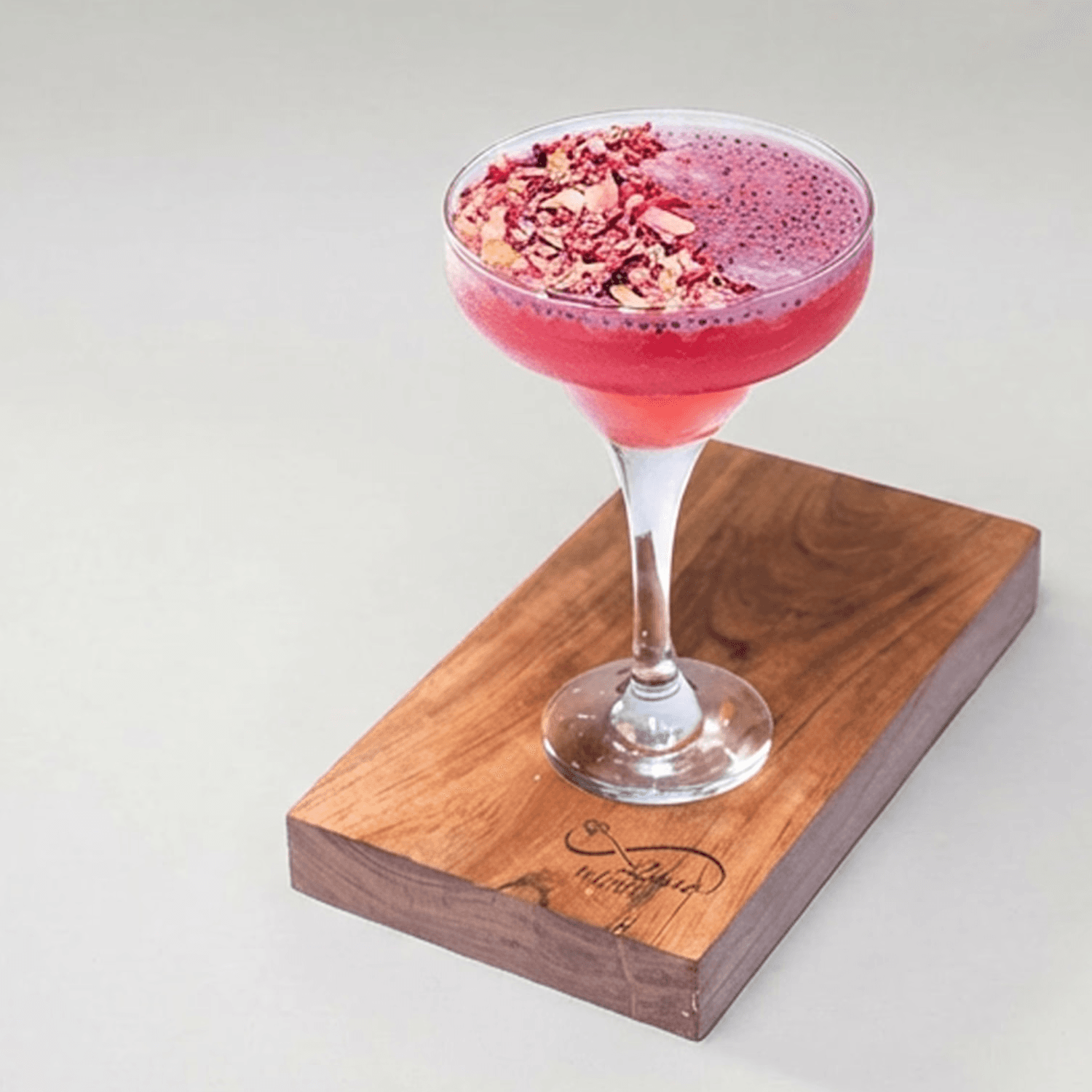 Pomegranate juice, rose, and chia seeds in a ruby drink loaded with refreshing goodness.